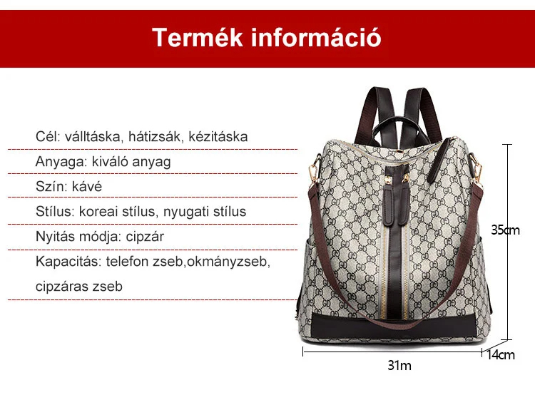 Nagy kapacitású divatos hátizsák